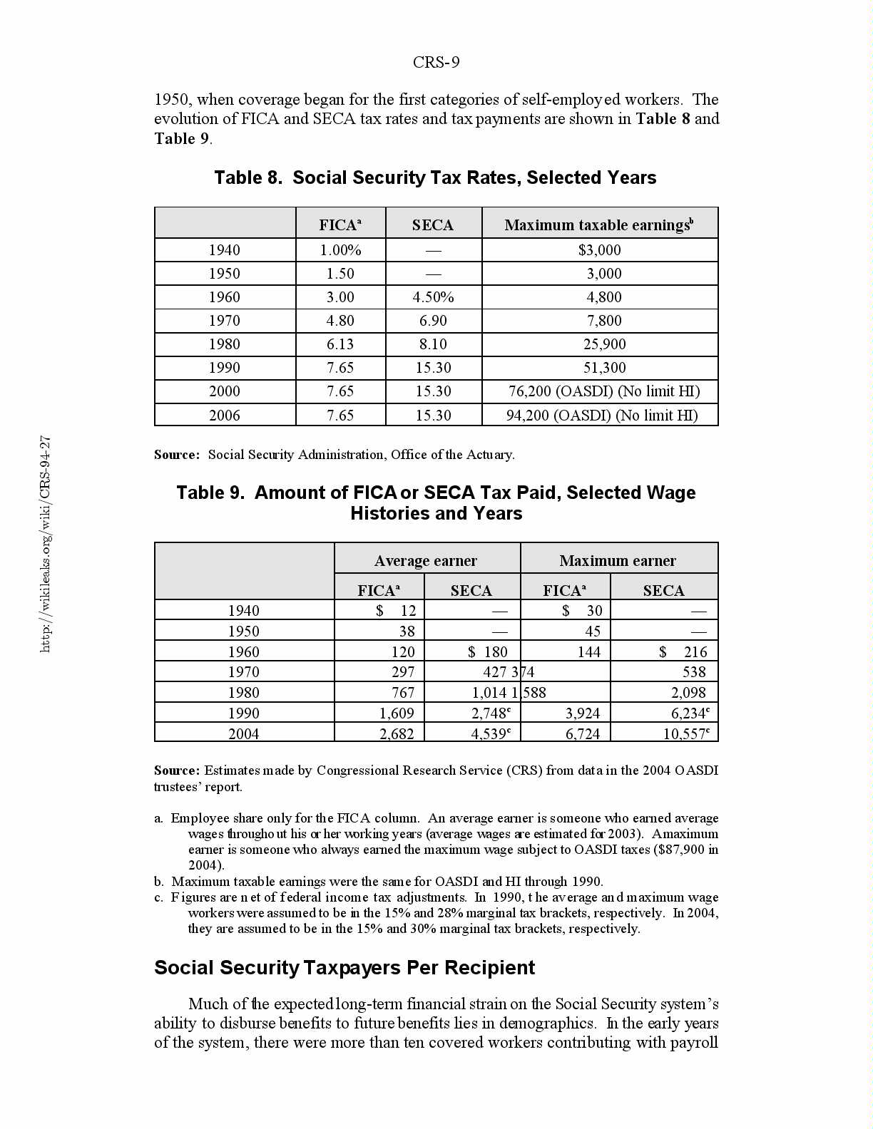 Table 8. Social Security Tax Rates, Selected Years.......................9