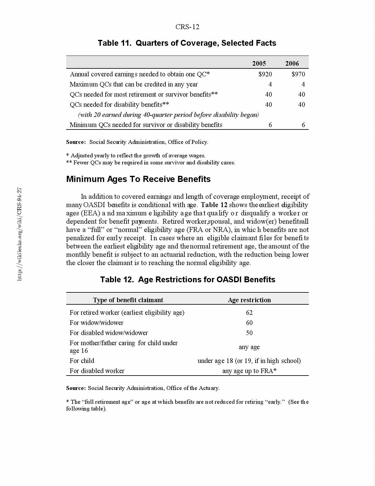 Table 12. Age Restrictions for OASDI Benefits.........................12