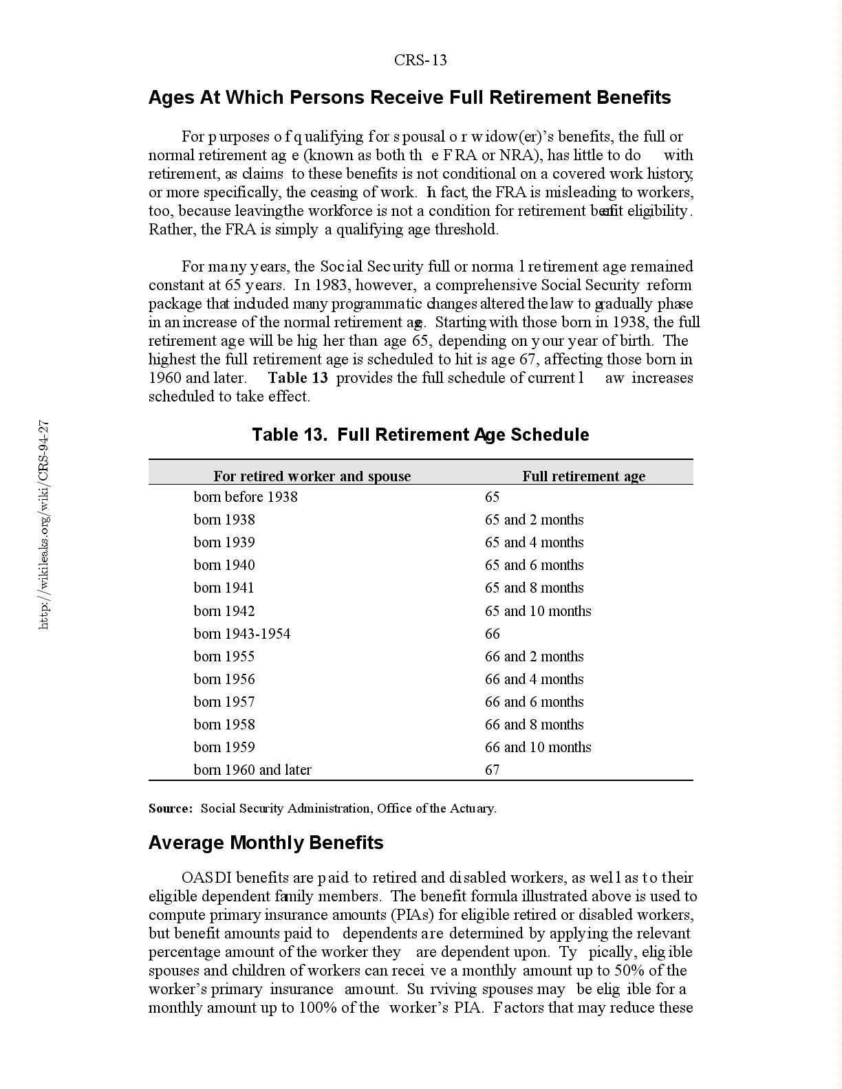 Table 13. Full Retirement Age Schedule..............................13