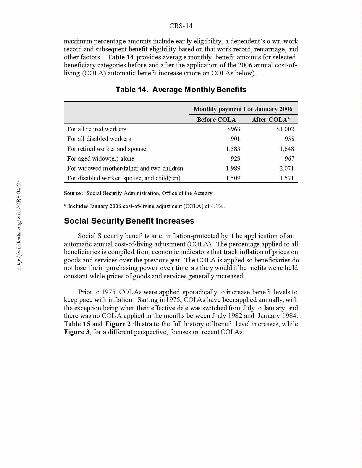 Social Security Benefit Increases.................................14