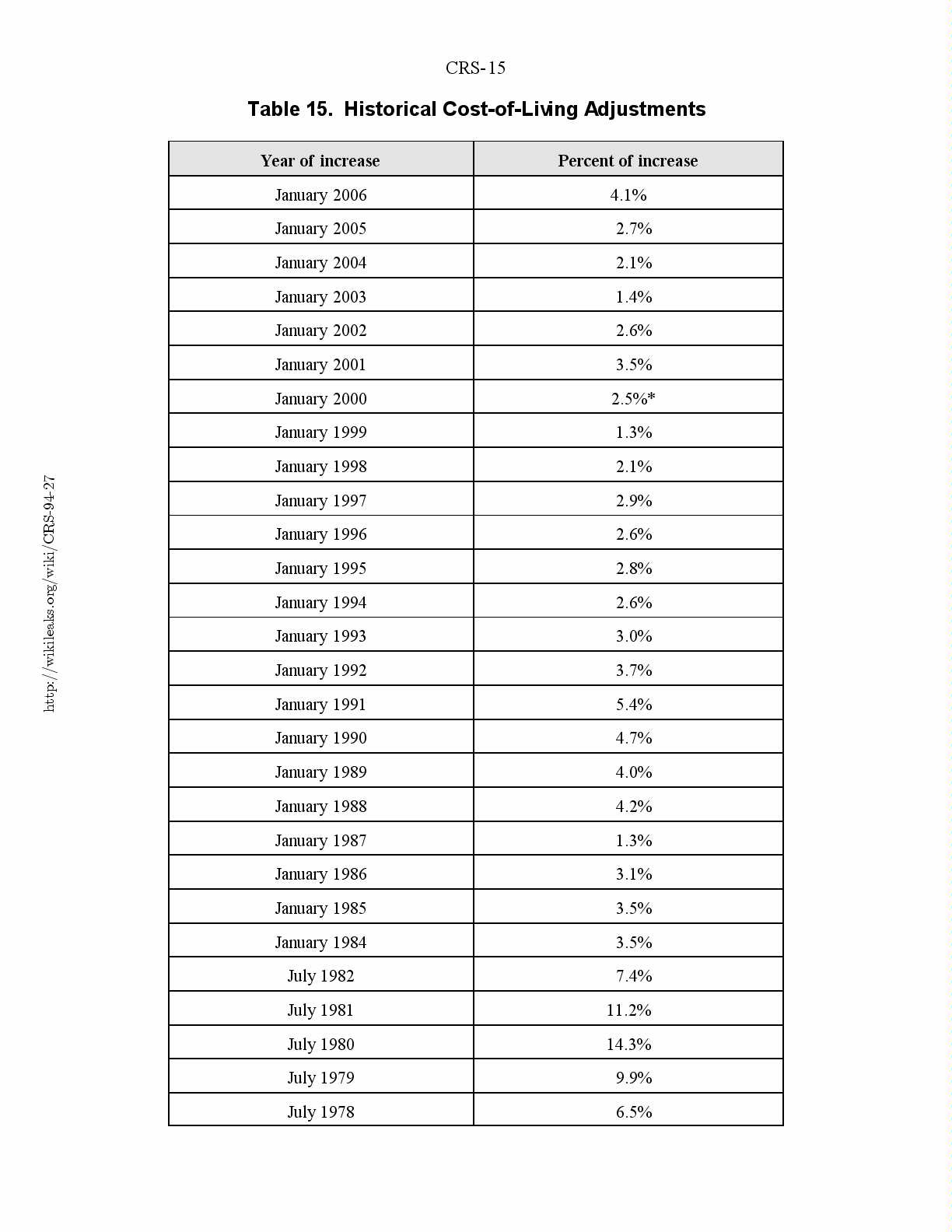 Table 15. Historical Cost-of-Living Adjustments........................15