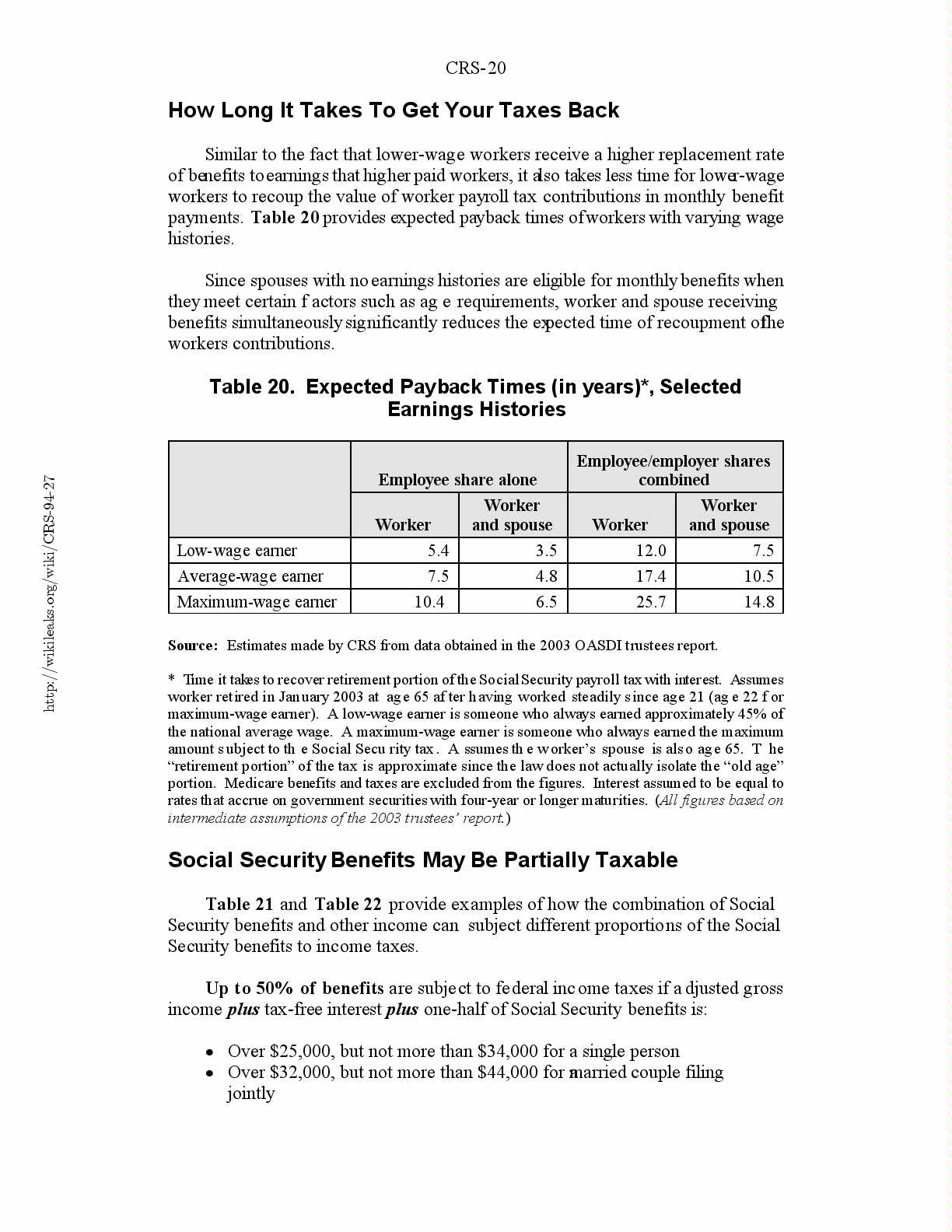 Social Security Benefits May Be Partially Taxable...................20
