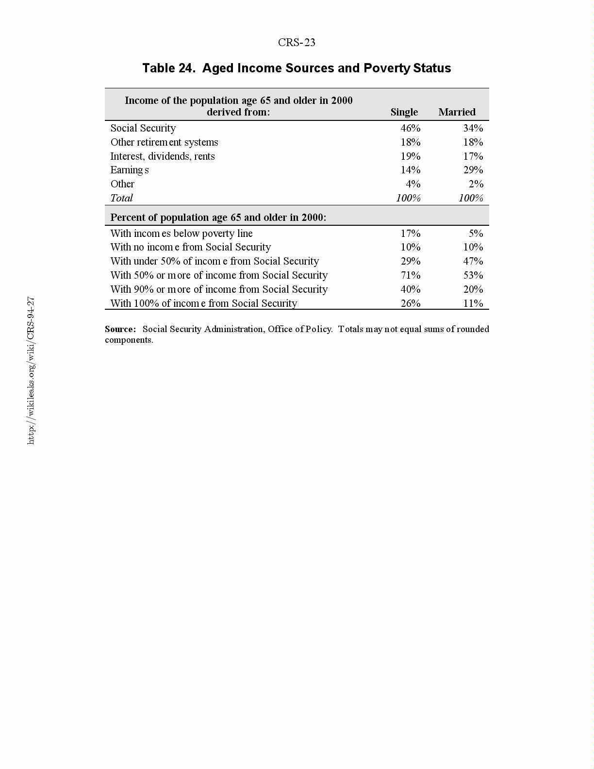 Table 24. Aged Income Sources and Poverty Status.....................23
