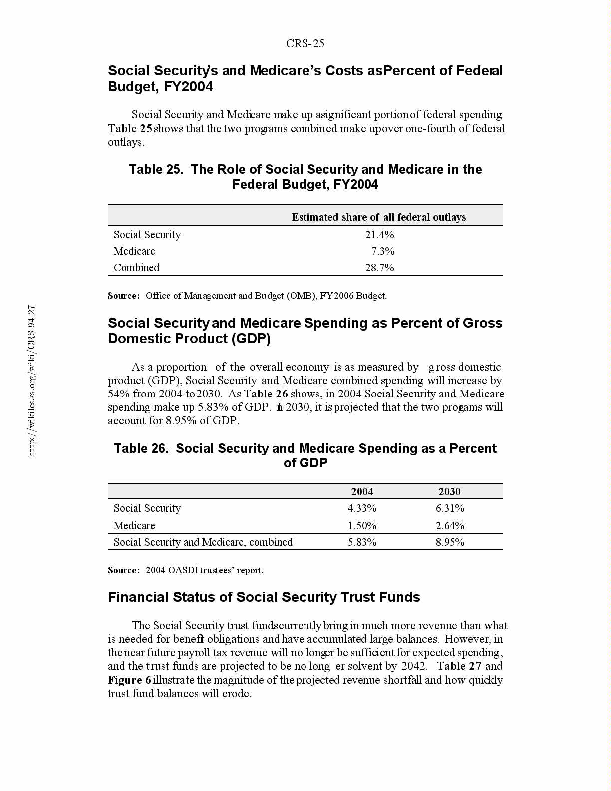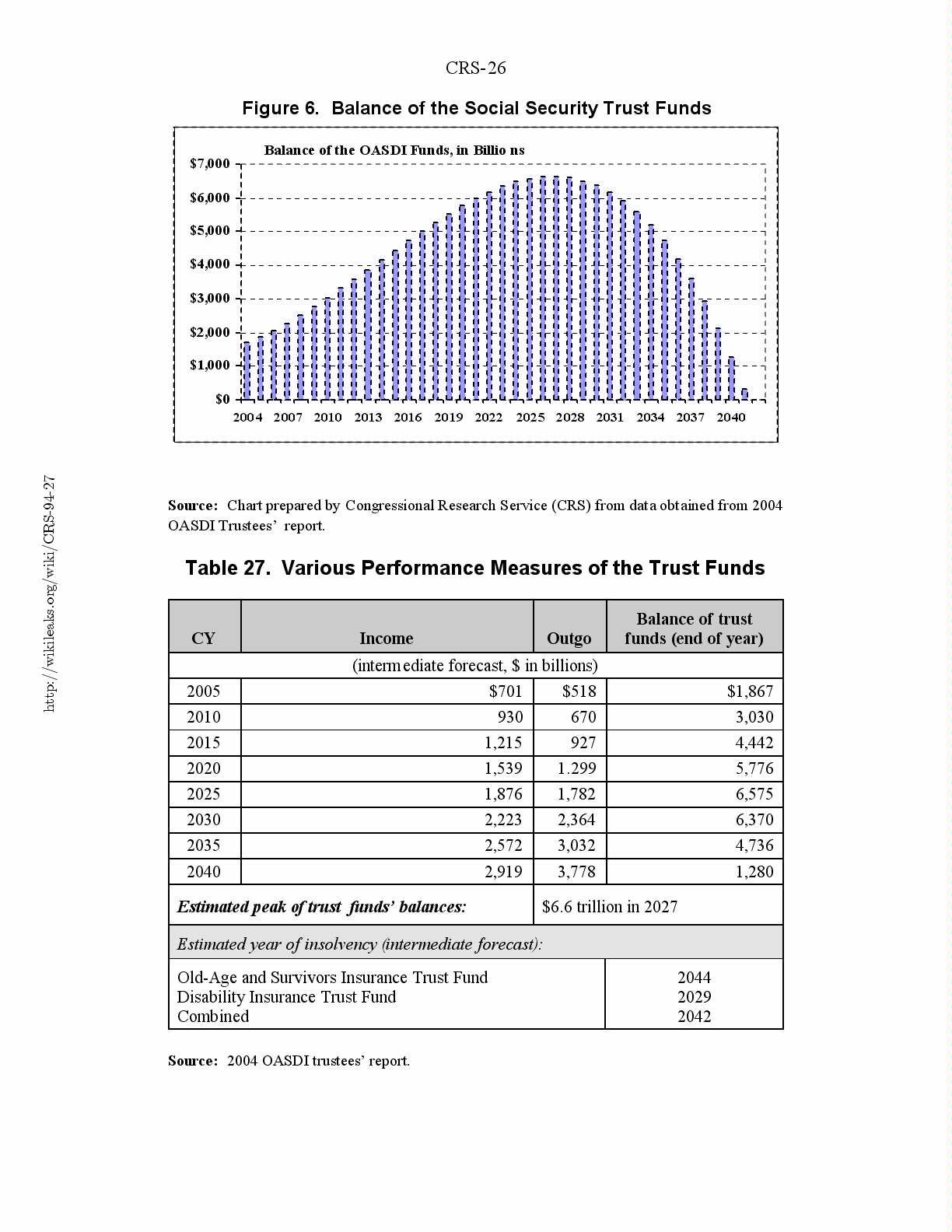 and the trust funds are projected to be no longer solvent by 2042. Table 27 and
