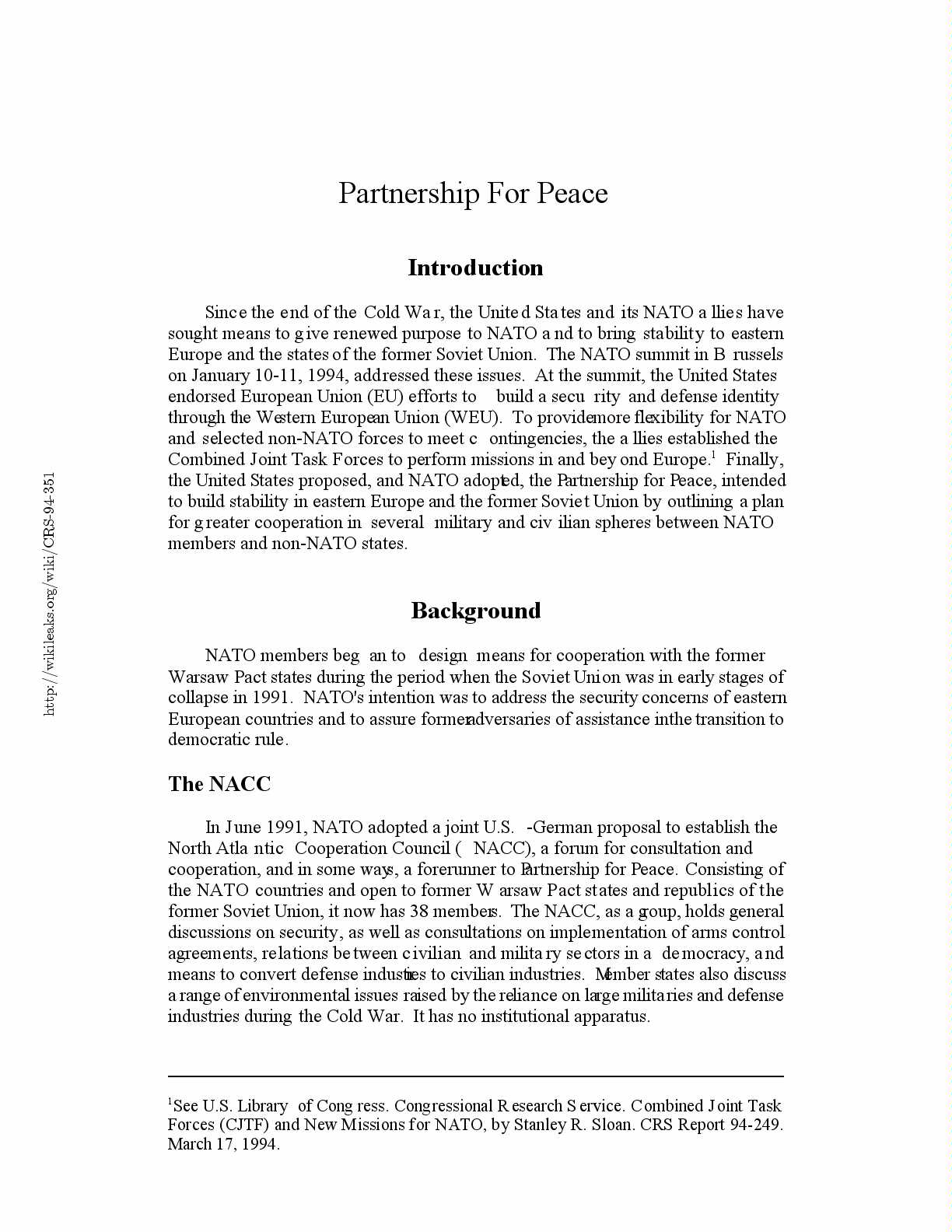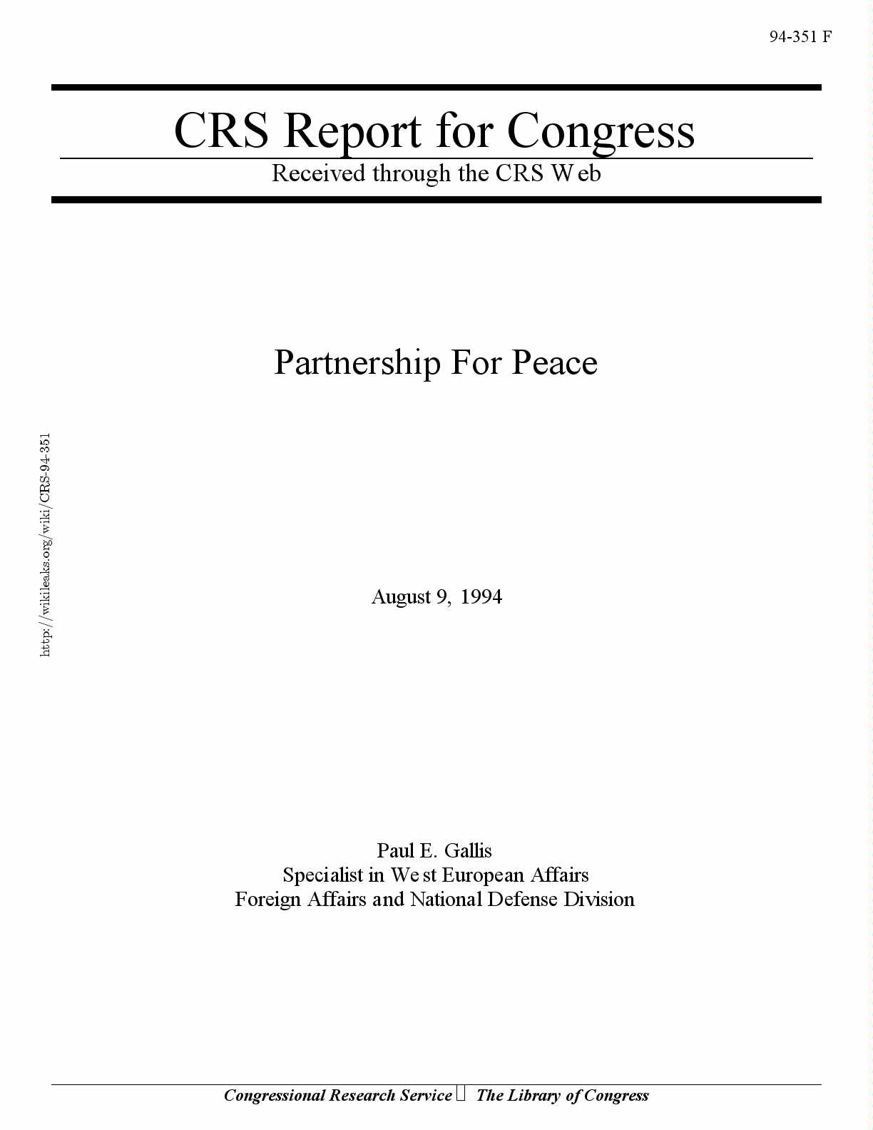 This report examines the origins of NATO's Partnership for Peace (PfP) program in 1994.