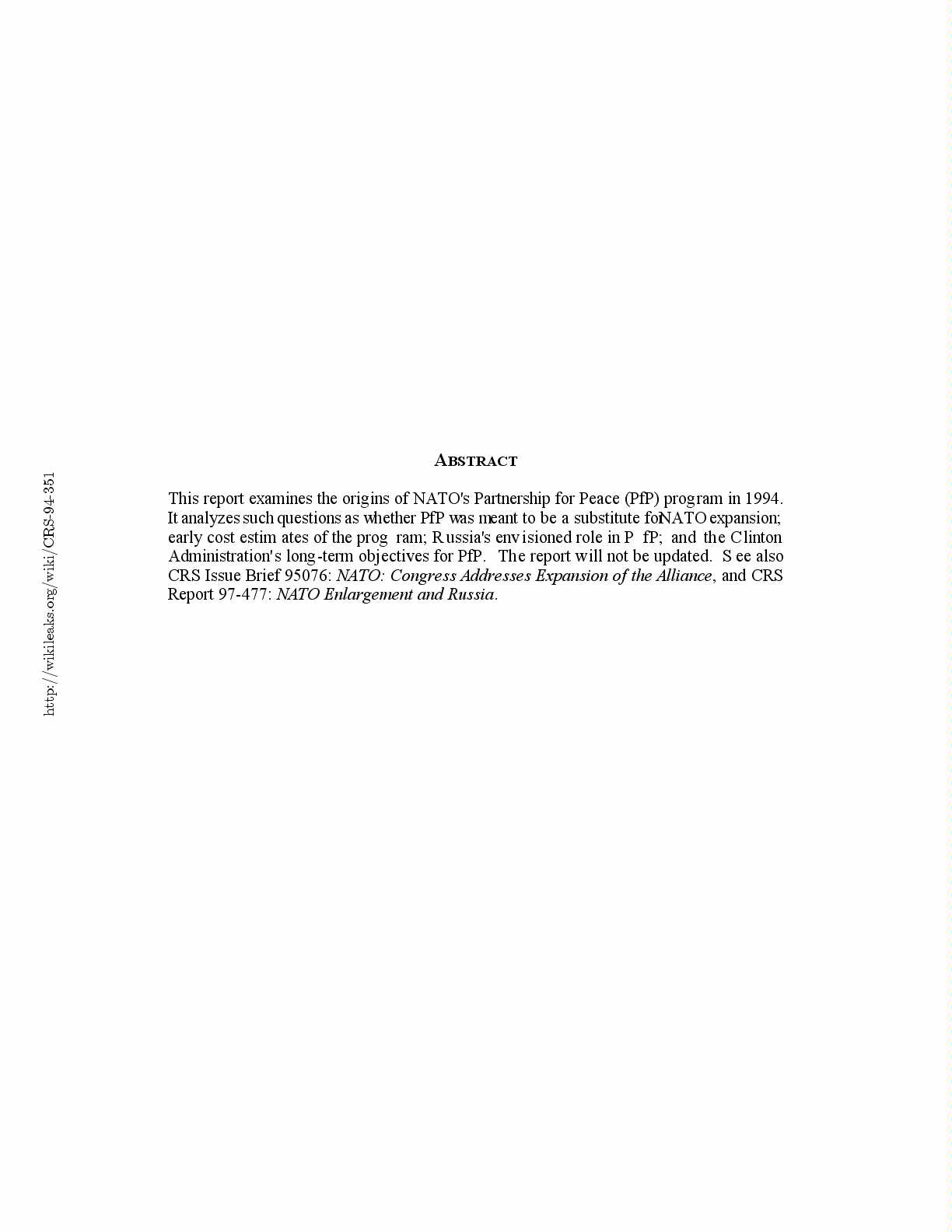 Administration's long-term objectives for PfP. The report will not be updated. See also
