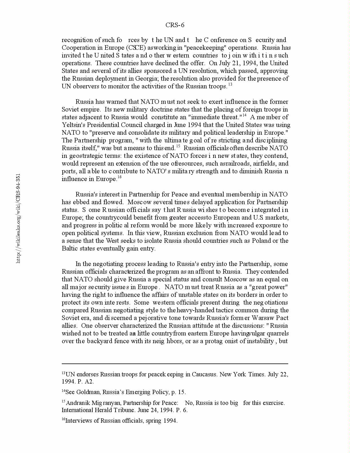 18See, for example, Yeltsin Vents Anger at NATO, WP, April 13, 1994; Vladimir Lukin, No