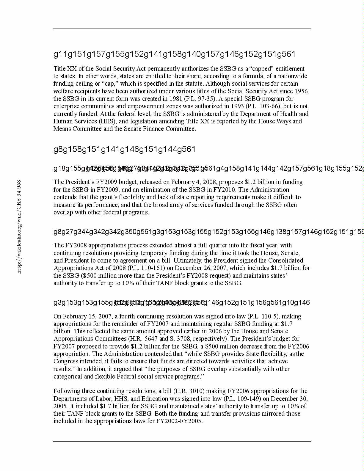 the disabled. The FY2008 Consolidated Appropriations Act (P.L. 110-161) maintains SSBG