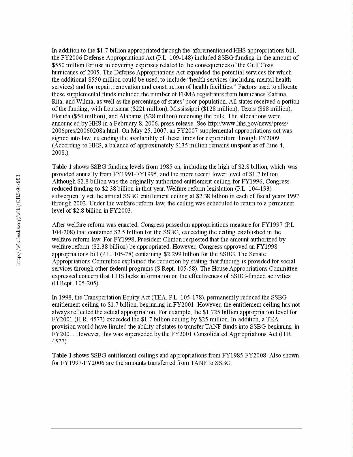 regular SSBG funds since FY1998, see the HHS website at http://www.acf.dhhs.gov/programs/