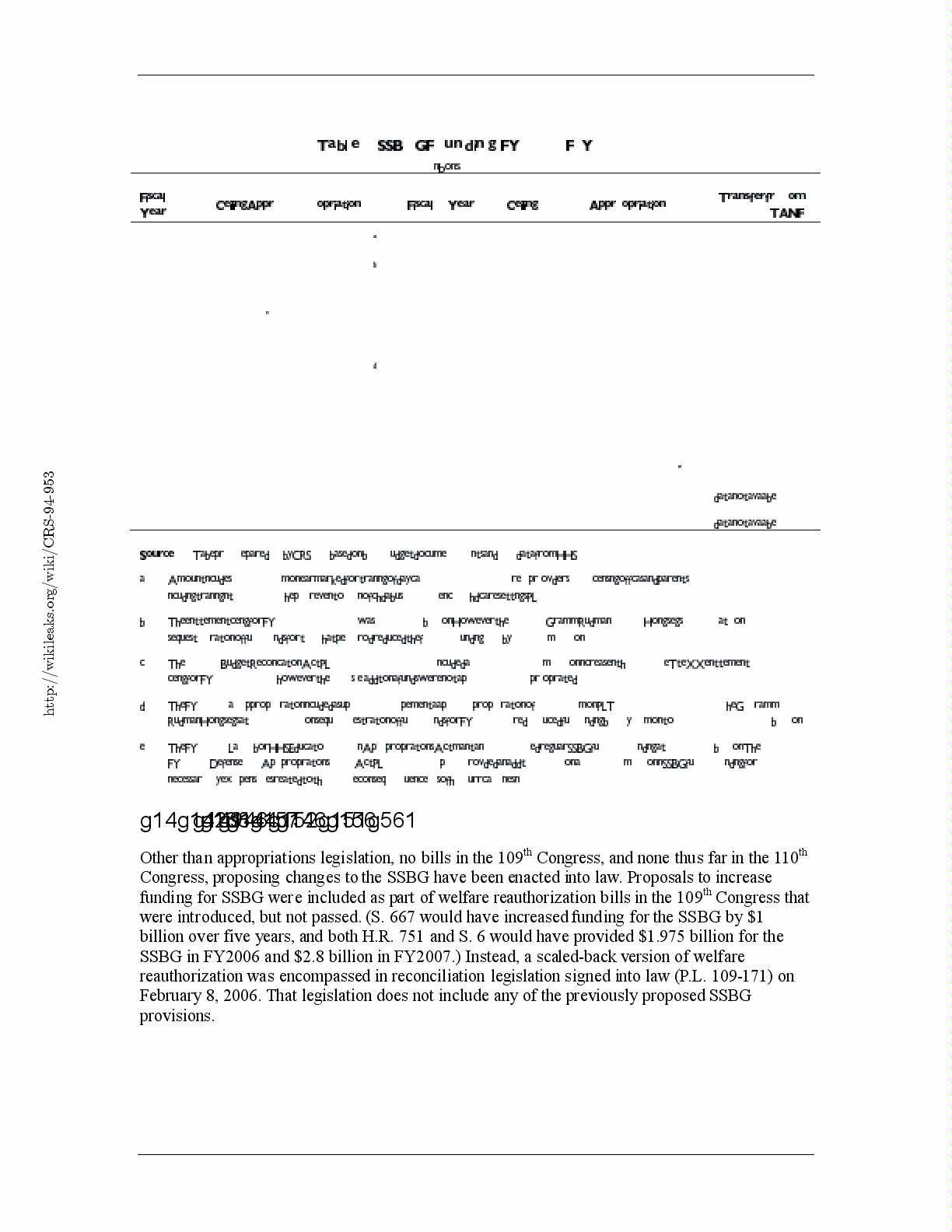 funding for SSBG were included as part of welfare reauthorization bills in the 109 Congress that