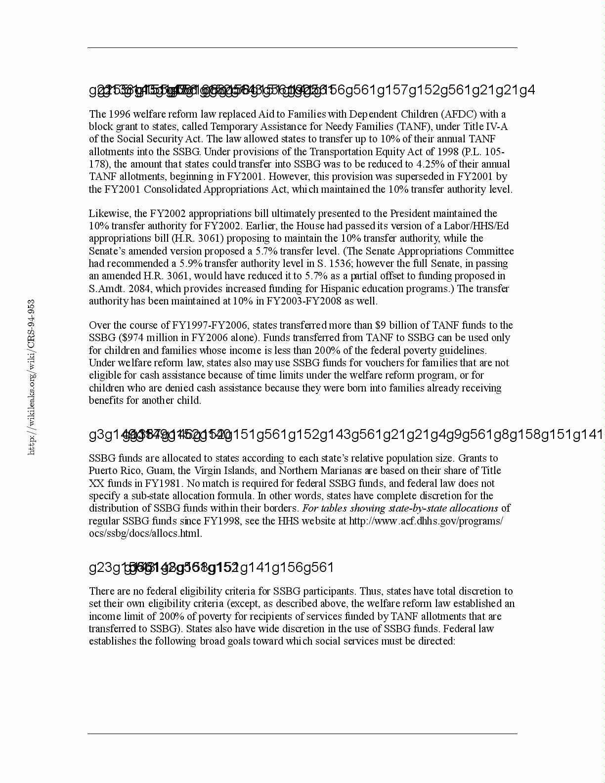 SSBG ($974 million in FY2006 alone). Funds transferred from TANF to SSBG can be used only