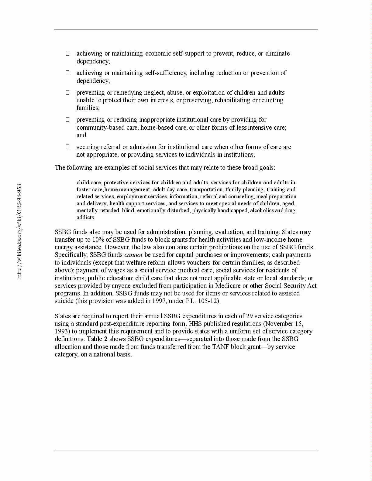 definitions. Table 2 shows SSBG expenditures—separated into those made from the SSBG