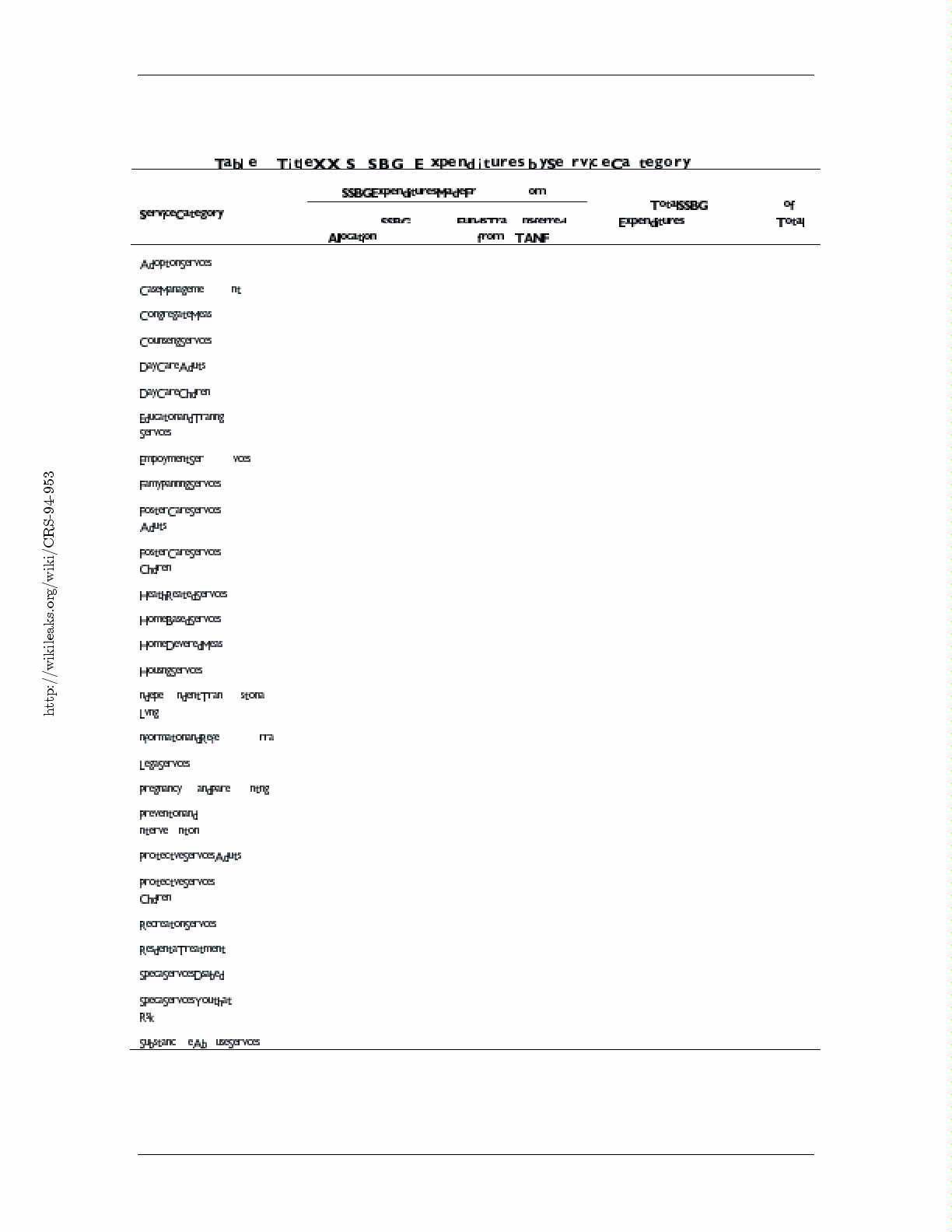 Table 2. Title XX (SSBG): Expenditures by Service Category, 2006